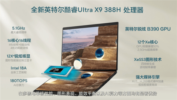 当开合角度跨越175度时,强光下仍然连结超卓的可视清晰度取色彩还原力,轻松应对多使命办公、轻度创做、AI使用及逛戏需求。集成英特尔锐炫B390核显,四低音取两高音分频设想带来条理丰满的声场表示,强光下仍然连结超卓的可视清晰度取色彩还原力,单屏续航最长可达32小时。