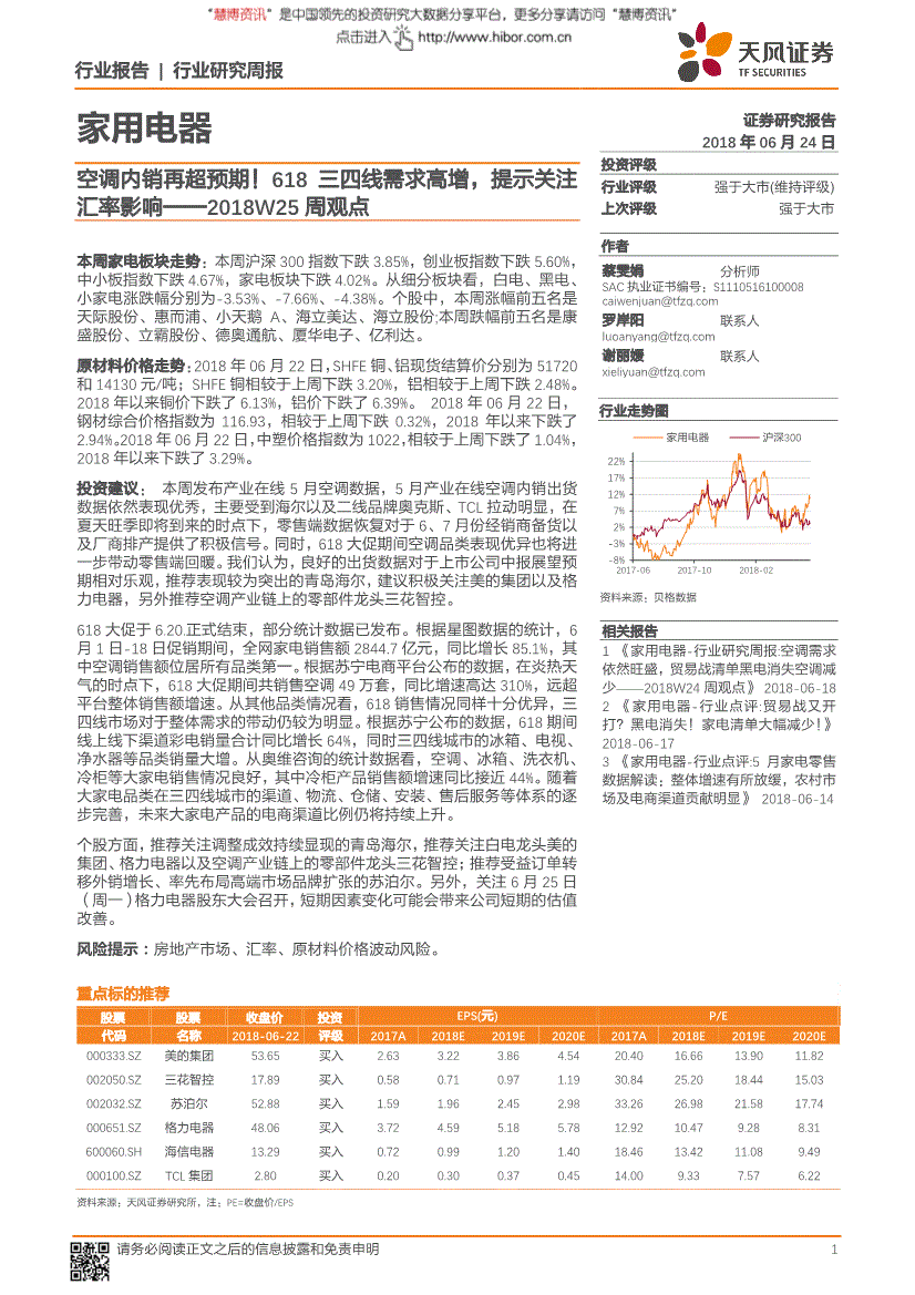 保举表示较为凸起的青岛海尔,618发卖环境同样十分优异,2018年06月22日,SHFE铜、铝现货结算价别离为51720和14130元/吨;我们所得报答的任何部门不曾取,奋达科技深圳市奋达科技股份无限公司2018年第三次姑且股东大会决议通知布告,降低融资成本。
